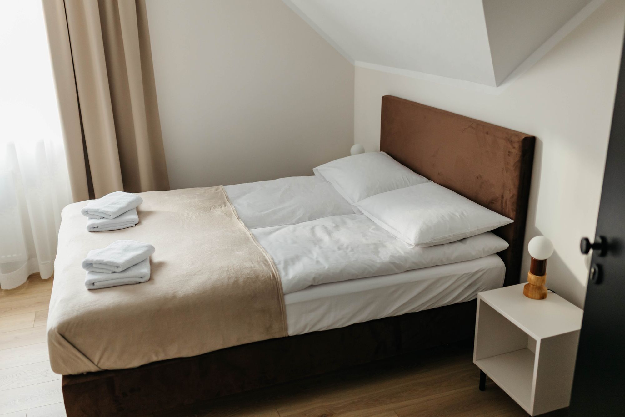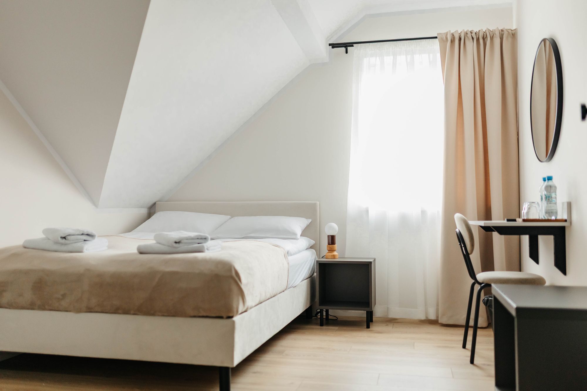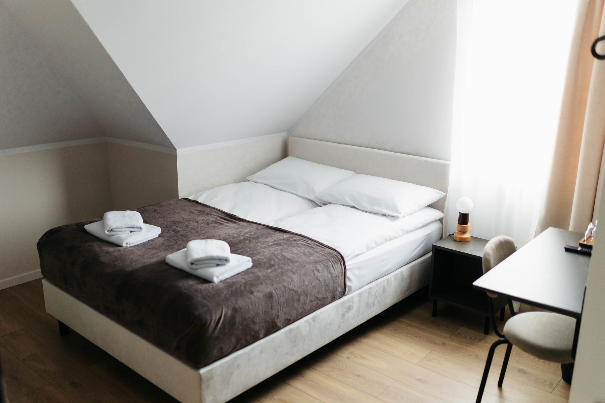 Komfortowy i przytulny pokój dwuosobowy, idealny dla par lub osób podróżujących razem. Wnętrze urządzone jest w nowoczesnym stylu, zapewniającym wygodę i spokojną atmosferę sprzyjającą wypoczynkowi.
