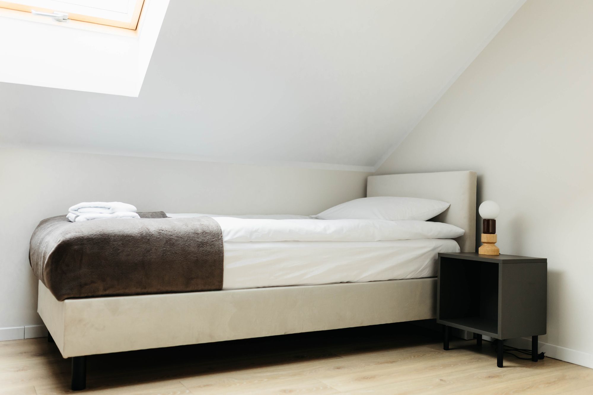 Przytulny i nowoczesny pokój jednoosobowy, idealny dla osób podróżujących służbowo lub prywatnie. Wnętrze zostało urządzone w nowym standardzie, z dbałością o komfort i funkcjonalność.